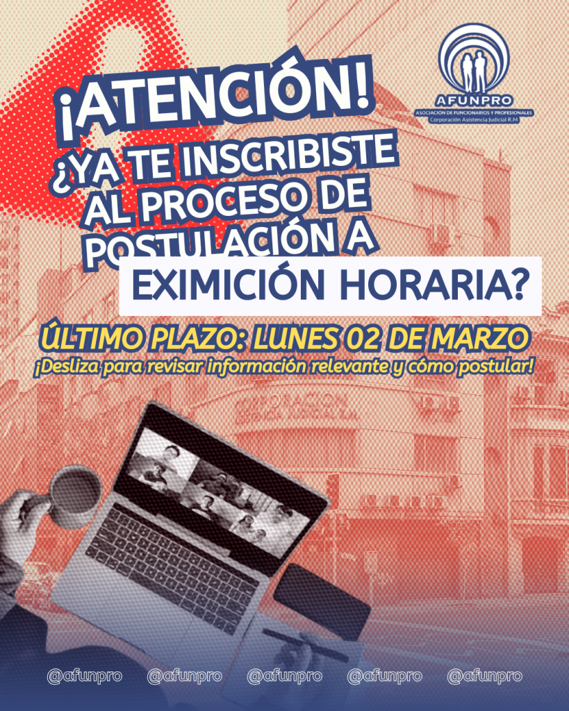 ¡QUE NO SE TE PASE! Trabajo Colaborativo ¿Ya te inscribiste al proceso de postulación a EXIMICIÓN HORARIA? 28/02/202601/03/2026 admin_afunpro Compartir Facebook Twitter Pinterest LinkedIn
